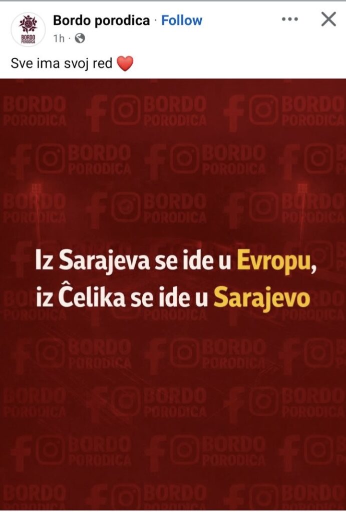 Jedna od najpolularnijih stranica “Bordo porodica” objavila je provokativnu poruku za Zeničane i Čelik.