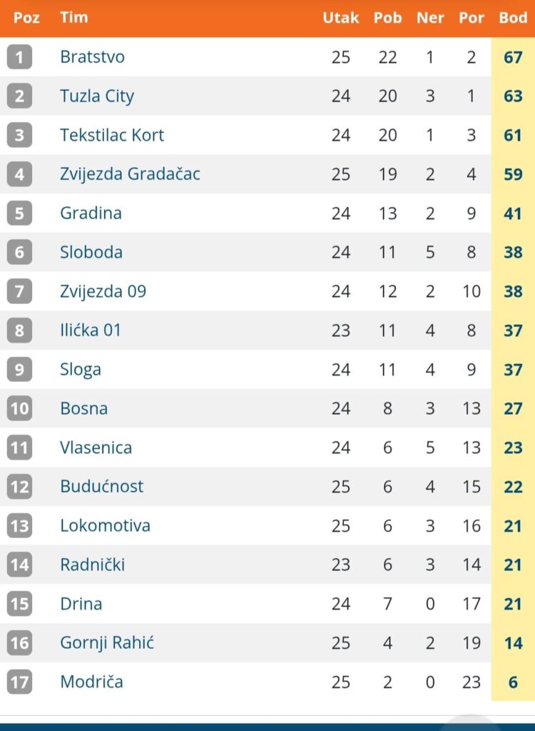 Do kraja prvenstva ostalo je još nekoliko zahtjevnih utakmica, ali Bratstvo sada ima realnu prednost i sudbinu drži u svojim rukama.