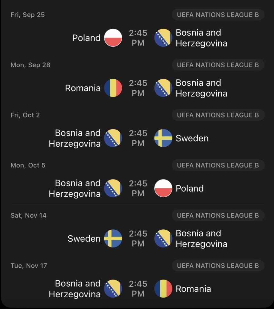 UEFA je objavila raspored Lige nacija za 2026. godinu, a reprezentacija Bosne i Hercegovine saznala je svoj put kroz grupnu fazu takmičenja. Zmajevi će igrati protiv Poljske, Rumunije i Švedske, a svaki bod mogao bi imati ogroman značaj u kontekstu kvalifikacija za EURO 2028.