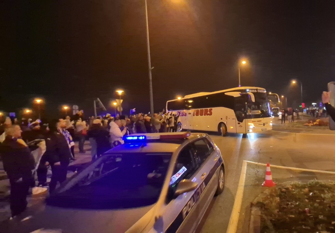 Zvižduci navijača BiH prema autobusu gdje je reprezentacija Rumunije.
