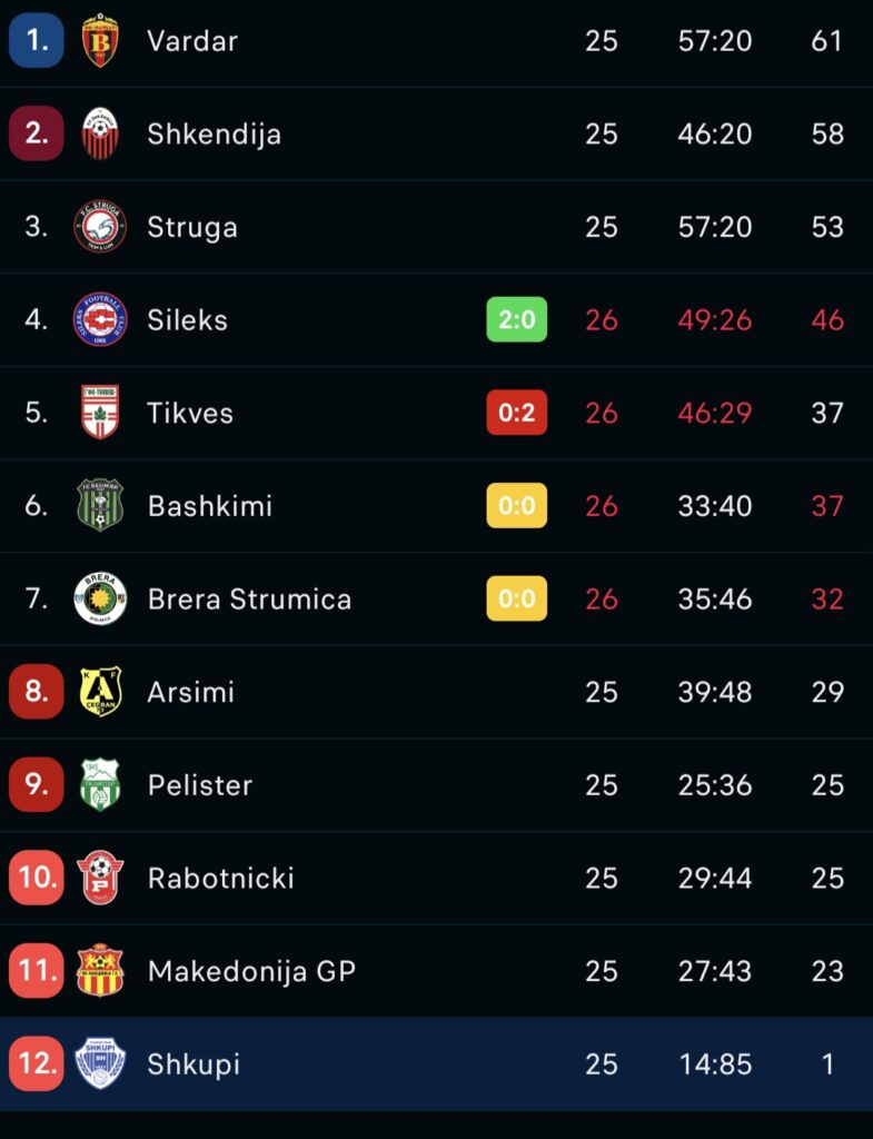 KF Shkupi zvanično je ispao iz elitnog ranga makedonskog fudbala, a iza tog sportskog neuspjeha krije se mnogo dublji problem koji već mjesecima razara klub iznutra.