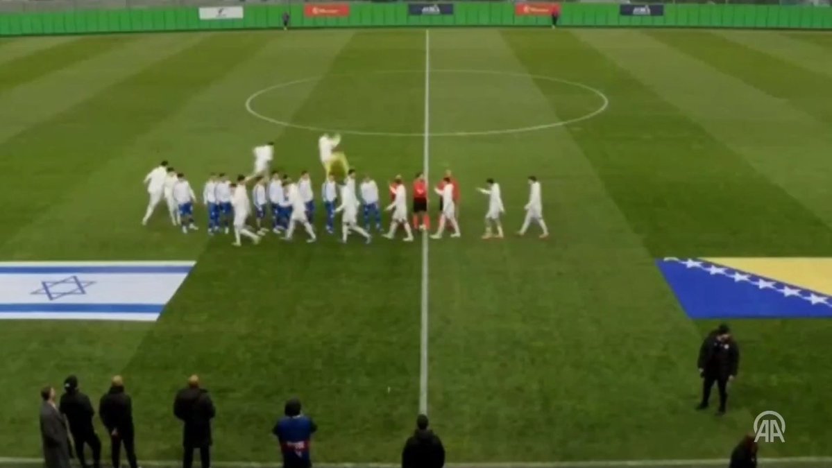 Today, as Bosnia and Herzegovina faced Israel in a U21 Euro qualifier —played on ‘neutral’ ground in Hungary— most of the Bosnian players refused the pre-match handshake and walked straight to their half as an act of protest. pic.twitter.com/WZ7McKIKsv