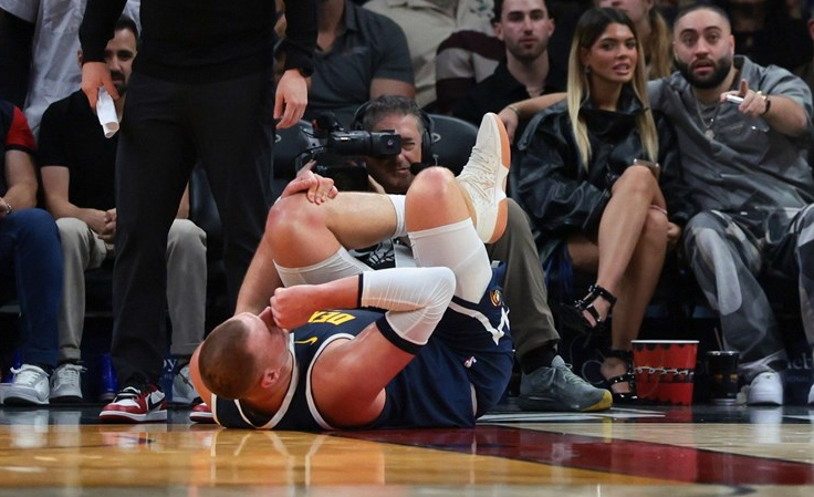 Nikola Jokić teško se povrijedio u posljednjem napadu prvog poluvremena utakmice u kojoj su njegovi Denver Nuggetsi igrali protiv Miami Heata. Jokićeva lijeva noga ispružila se, a zatim popustila nakon što ga je desna noga suigrača Spencera Jonesa udarila u lijevo koljeno.