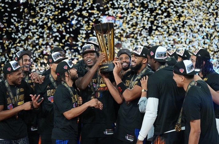 Košarkaši New York Knicksa osvajači su NBA kupa. Ekipa iz New Yorka je u finalu odigranom u Las Vegasu svladala San Antonio Spurse 124:113. Junaci pobjede bili su OG Anunoby s 28 i Jalen Brunson sa 25 postignutih poena. Ovo je prva titula Knicksa u Kupu i prvi trofej koji će podići ispod svoda dvorane još od 1973. godine kad su drugi i zadnji put bili prvaci NBA lige. Premijerno su to bili tri godine ranije.