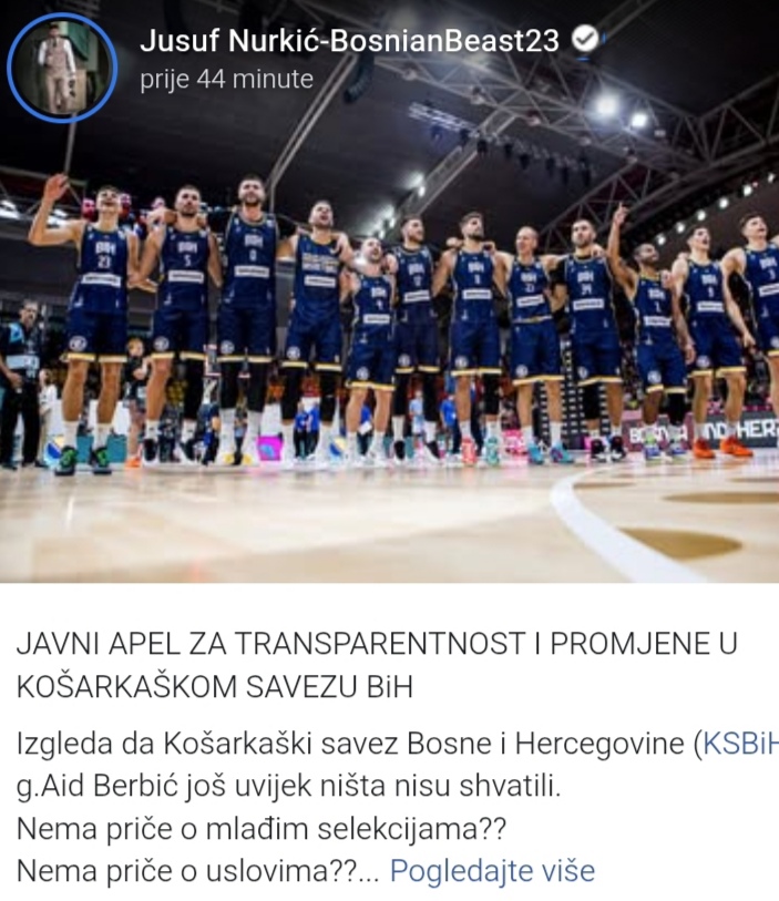 “Izgleda da Košarkaški savez Bosne i Hercegovine (KS BiH) i gospodin Aid Berbić još uvijek ništa nisu shvatili. Nema priče o mlađim selekcijama? Nema priče o uslovima? Nema priče o organizaciji i poštovanju prema igračima. Sve se, kao i uvijek, svodi na pare. Umjesto da razgovaramo o razvoju sistema i stvaranju budućih igrača koji će biti ponos Bosne i Hercegovine, iz Saveza stižu samo opravdanja i prazne riječi. Ljudi koji vode Savez ponašaju se kao da je košarka njihov privatni biznis, a ne sport koji predstavlja cijelu državu. Dosta nam je političkih funkcija, praznih obećanja i lažnih prikaza o ‘ulaganjima’. Sve što igrači traže je transparentnost da javnost zna istinu”, napisao je Nurkić na društvenim mrežama i dodao: